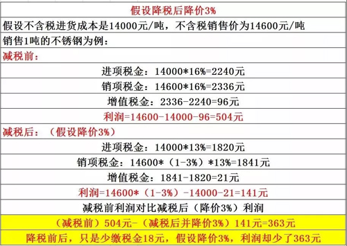 今年制造業(yè)增值稅由16%的稅率降至13%,客戶(hù)再次借機(jī)降價(jià)3%,下面讓我們來(lái)好好算算: