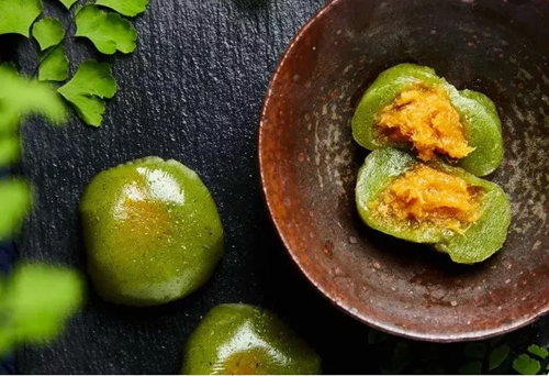 青團,江南特色小吃,因多在清明時節(jié)食用,又稱清明團子、艾米果等。用艾草汁拌糯米粉,包裹豆沙或蓮蓉餡兒,不甜不膩,有濃郁的艾香味。
