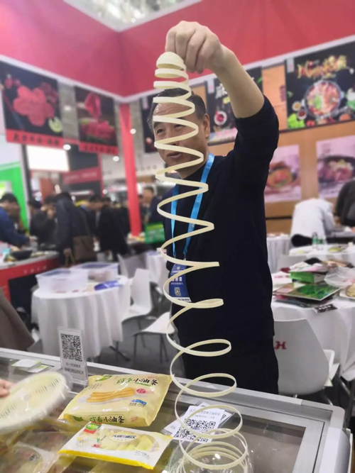 如果說,海洋類產品和預制菜調理品在餐桌上的定位是菜,那么米面產品就是主食。在本屆展會上,米面類產品的身影仍然隨處可見。