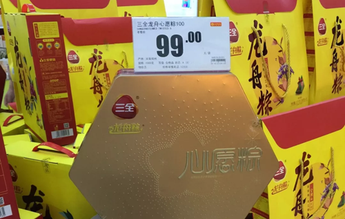 作為實體零售業中最具人氣的場所,大賣場依舊是消費者習慣購買粽子的地方。在河南鄭州的丹尼斯、卜蜂蓮花、大潤發等賣場,負責粽子促銷的人員從10人到30多人不等,有大聲吆喝的、有喇叭助威的,熱鬧異常。