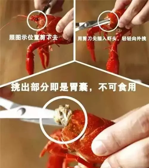 如果真的要吃,記得先剪去胃囊,再吃蝦黃,方法如下: