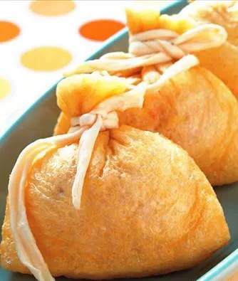 3.取一片作法1的油揚(yáng),取適量作法2的材料包入油揚(yáng)福袋中。