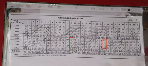 從超市冷藏冷凍設備溫檢記錄表中也可以看出,最低溫度為-21℃,最高溫度在-15℃,兩者溫差達6℃。