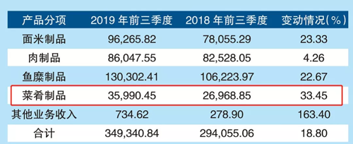 對此,安井食品補充稱,2019年前三季度菜肴制品同比增長33.45%,主要是蛋餃、千夜豆腐系列產(chǎn)品收入增長所致。