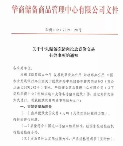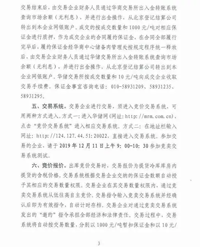 值得注意的是,《通知》提到,在12月12日競價成交后,成交企業不得借機囤積,必須交易成交后一個月內將儲備肉賣給終端用戶。