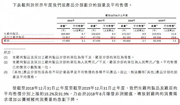 鳳祥食品稱,2019年凈利潤大幅增長,很大程度上得益于2019年雞肉制品及雞苗的市價(jià)上漲,此外還跟期間原材料(如豆粕)的平均采購成本下降有關(guān)。