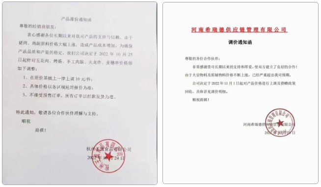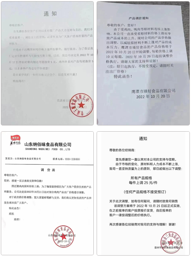 其中興威食品從10月30日到11月2日,三天內就發布了兩份調價通知。