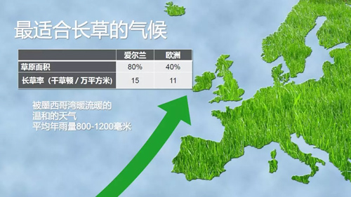 基于這樣的飼養(yǎng)模式,草無疑是愛爾蘭牛肉行業(yè)最重要的生產(chǎn)資料,愛爾蘭恰恰是最適合長草的地方。